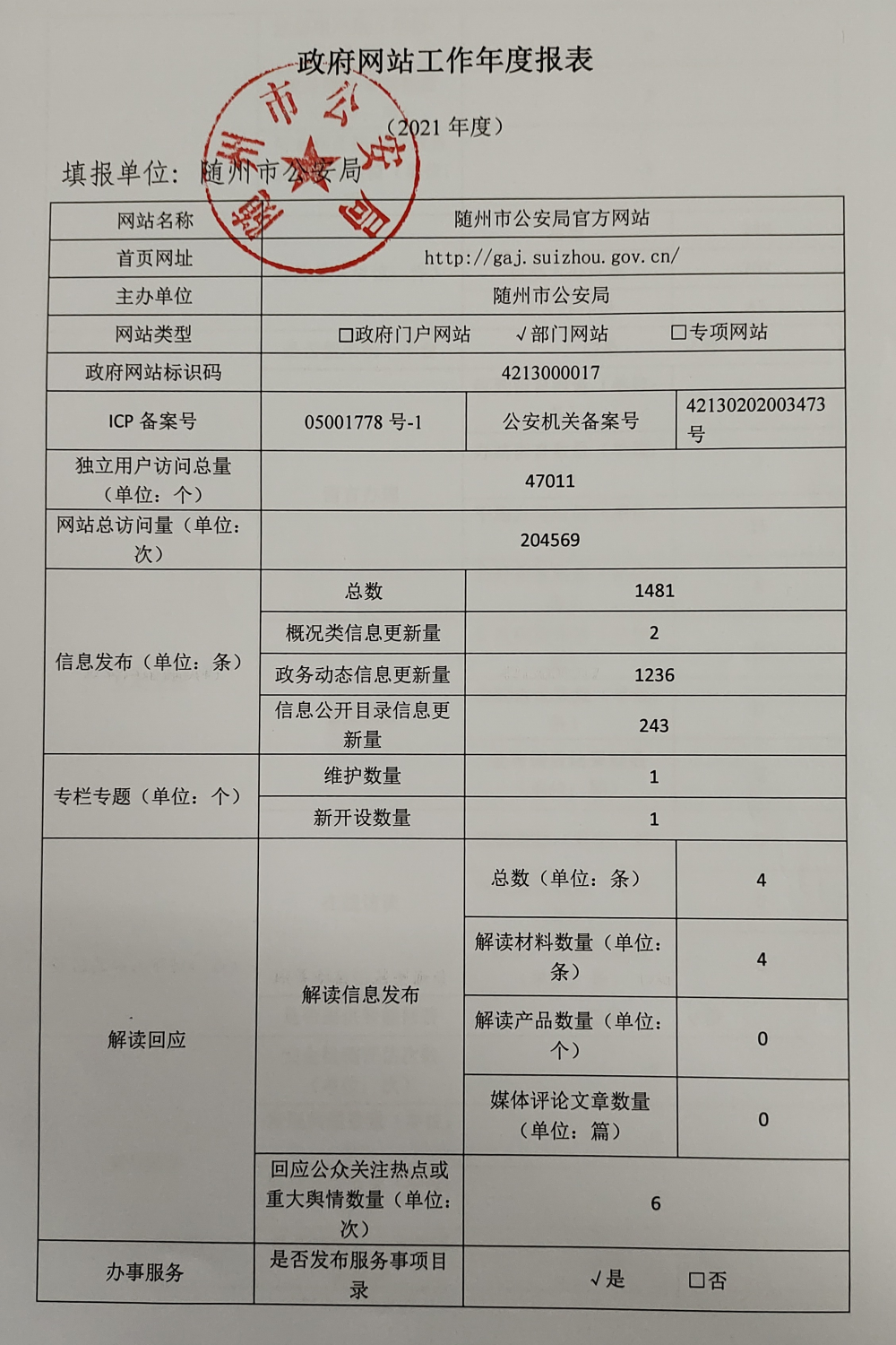 政府网站监管年度报表