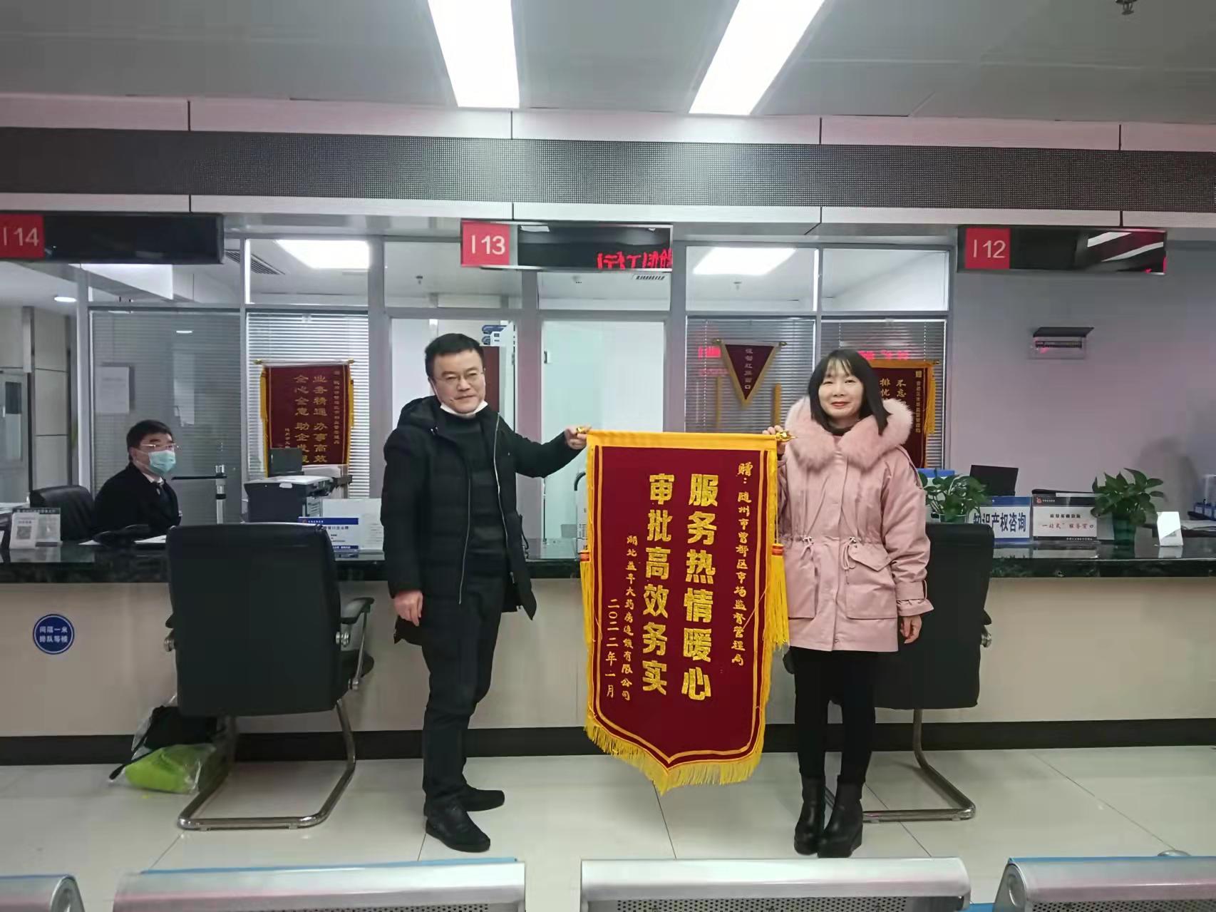 “十分感谢你们的全程指导,曾都区市场监管局服务质量优,办证速度快,让我们能以最快的速度进驻随州,真心为你们点赞。”湖北益丰大药房连锁有限公司随州区域经理游先生给曾都区市场监管局驻政务服务中心窗口送来锦旗时激动地说道。