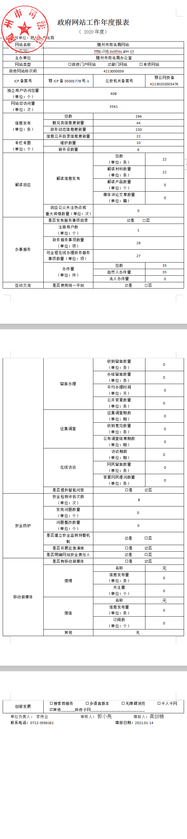 政府网站监管年度报表